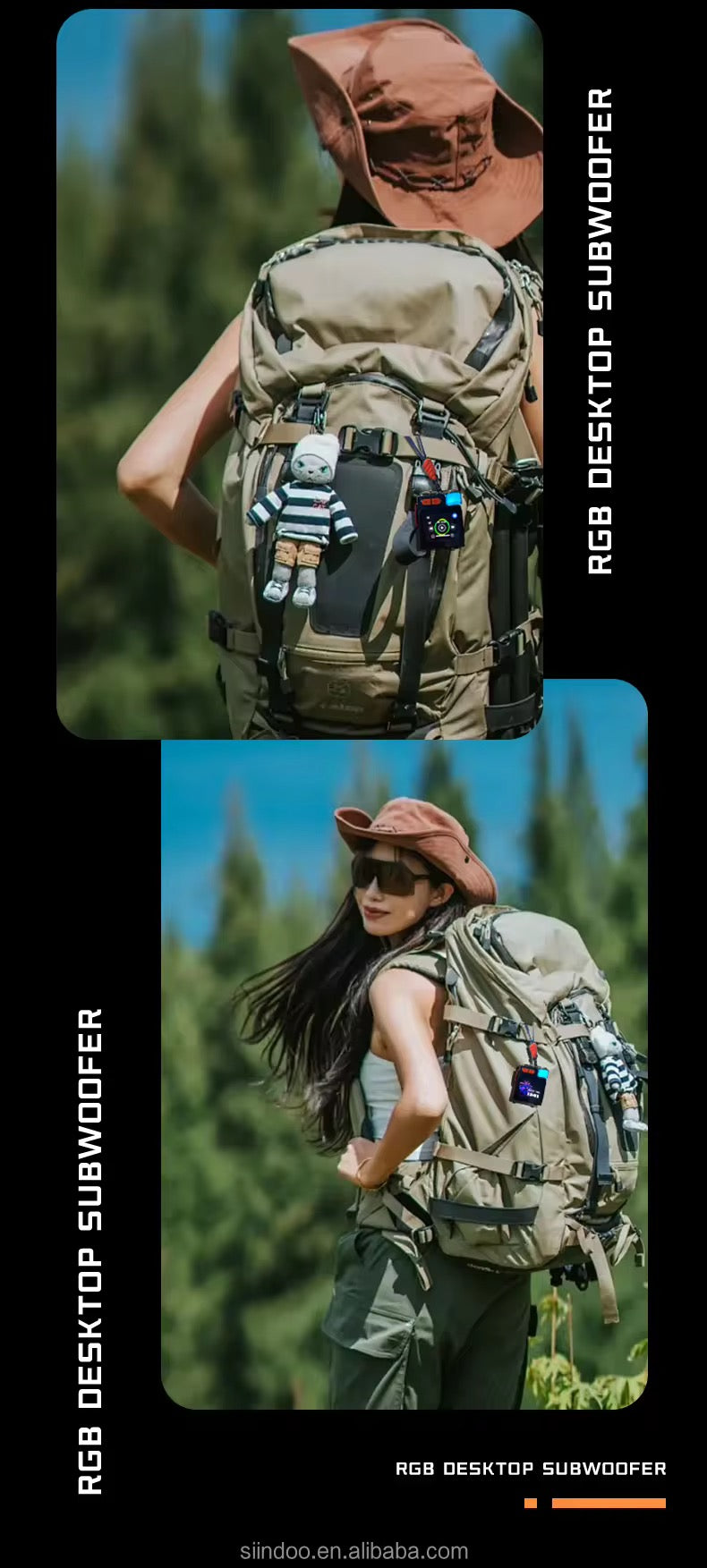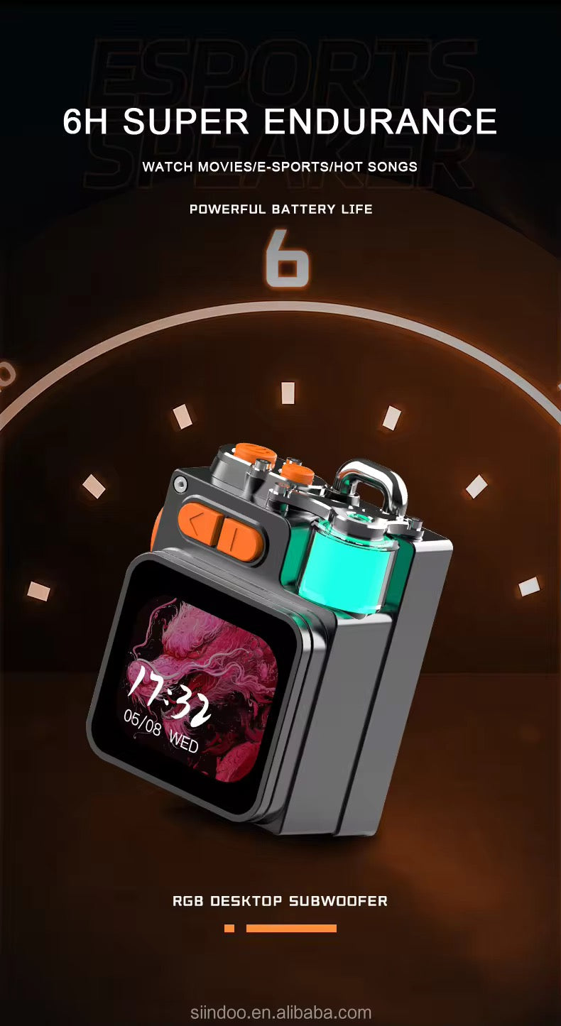 Altavoz inalámbrico portátil de fábrica con pantalla táctil inteligente de luz RGB y subwoofer de aleación de zinc para viajes y actividades al aire