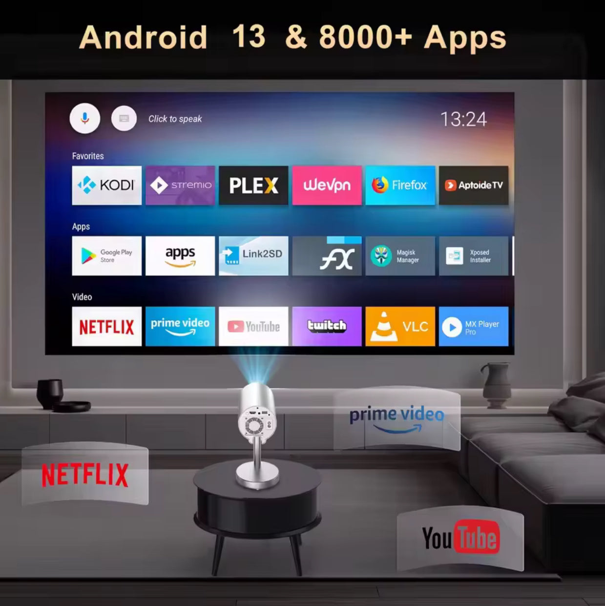 Mini proyector inteligente nativo 1080P 4K, Android 13, vídeo, cine, WiFi, HDMI. Bluetooth, proyector de cine en casa